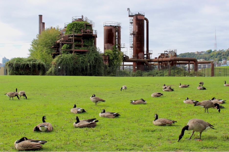 Like the satoyama forests in Japan and the remnants of the logging industry in Oregon, Gas Works Park shows what may become of capitalist ruins. Many species find a place here: plants, bacteria, fungi, humans, and even geese.